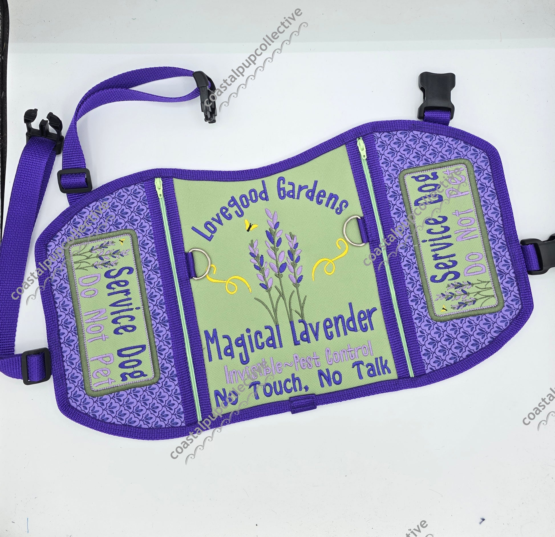Please read the description closely. This vest is a premade and while our girths go smaller and larger, the recommended girth is what size this vest would look best on. Girths and panel size on premades cannot be changed. *OUR VESTS ARE NOT MADE FOR MOBILITY USE OF ANY KIND AND WE DO NOT USE WELDED D-RINGS! We are NOT liable for wear and tear from improper use*